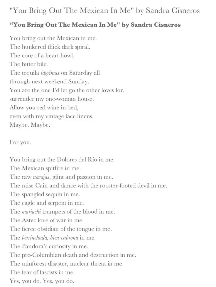 Pin On Teaching Poetry from i.pinimg.com Sandra cisneros (born december 20, 1954) is a chicana writer. Although sandra cisneros has described her poetry as more autobiographical than her fiction, many of her poems reflect the same communal voice found in her fiction.