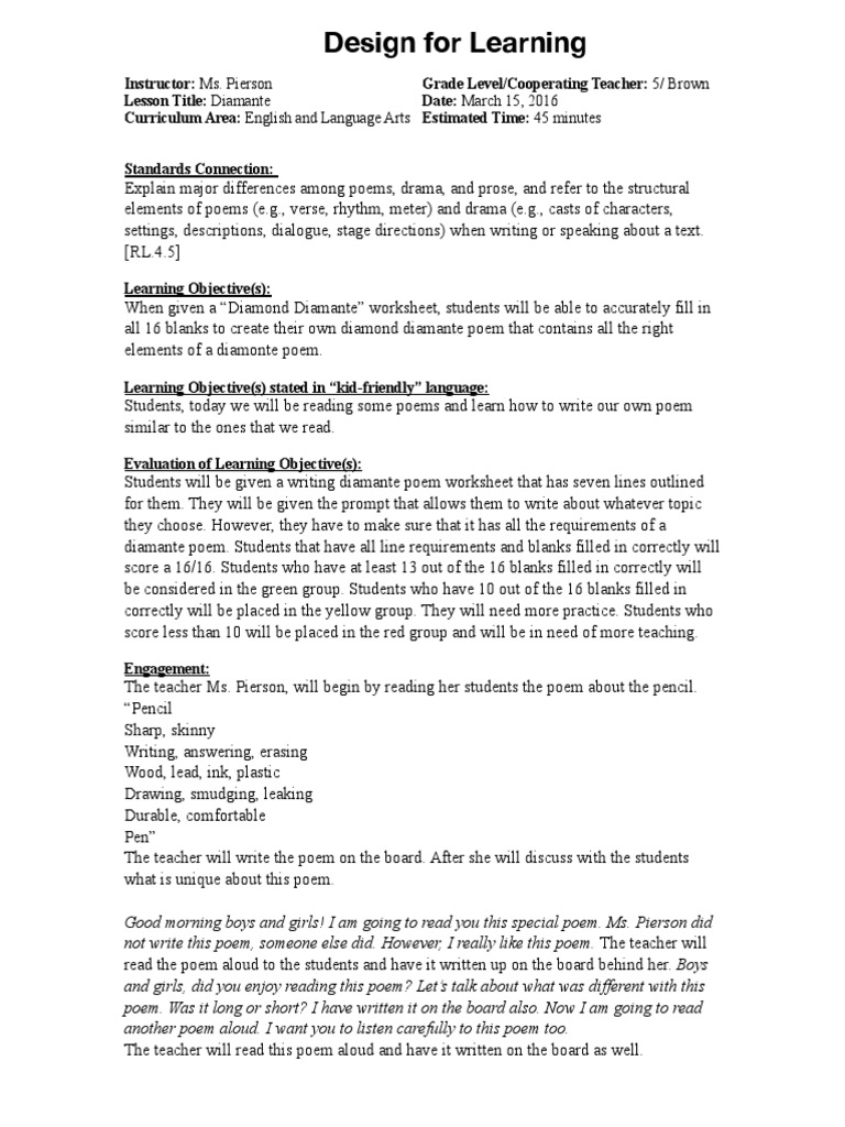 10+ Diamante Poem Definition PNG. View a definition and list of new poems in the diamante form by modern poets. This type of poem does not rhyme and it follows a simple formula using nouns, verbs, and adjectives.