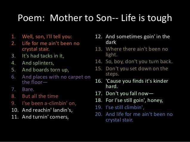 She tells her son that life for me ain't me no crystal stair literally meaning that life is not like a smooth , clear crystal.