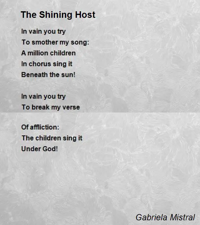 Poem by gabriela mistral — full text here; Selected poems of gabriela mistral 96 copies, 2 reviews. The first nobel prize in literature to be awarded to a latin american writer went to the chilean poet gabriela mistral. She was the first latin american to receive the nobel prize in literature, which she did in.