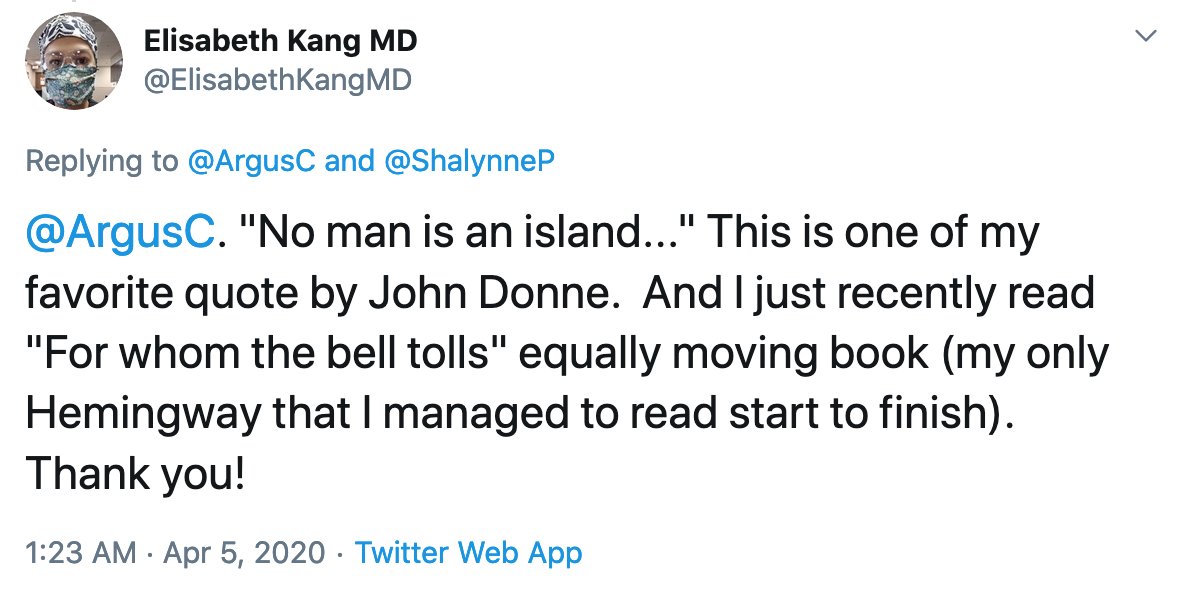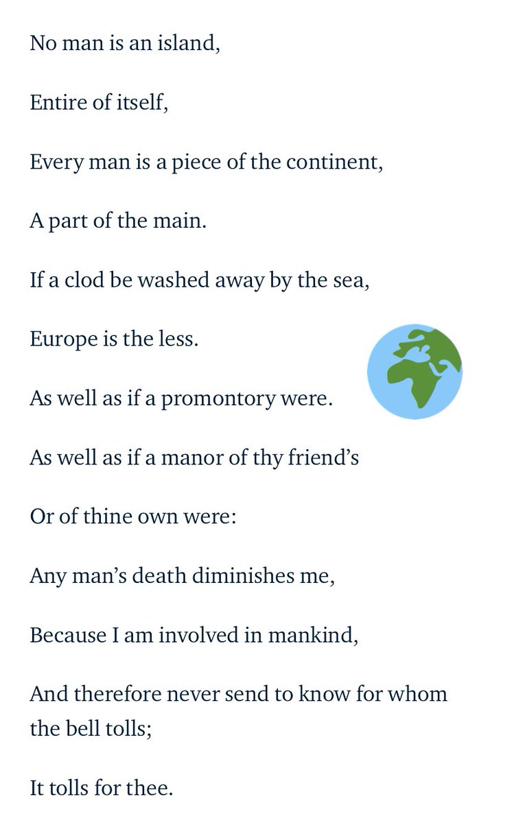 Perchance he for whom this bell tolls may be so ill, as that he knows not it tolls for him;