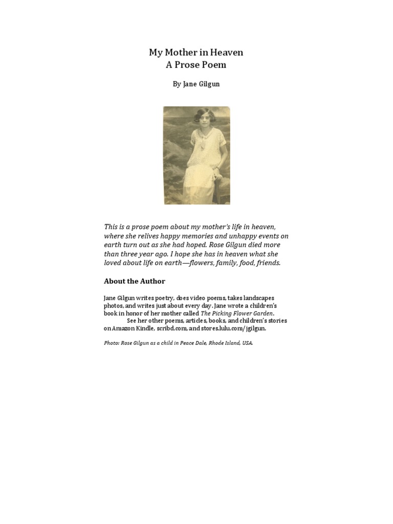 Download Mother In Heaven Poem PNG. She'll wear her very own crown. Now to thee shall praise from each be given, to whom may come the soothing thought, my mother is in heaven. rate this poem