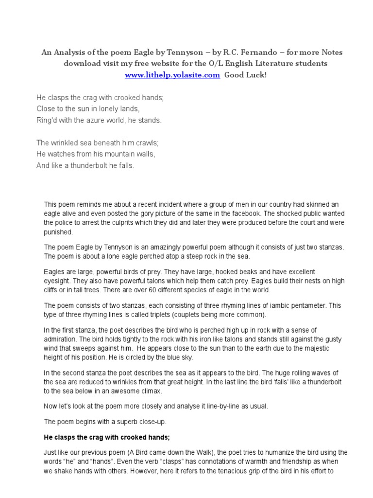 Get The Eagle Poem Images. The first verse of the poem shows personification. Alfred, lord tennyson lived during the victorian era during the 1800s.