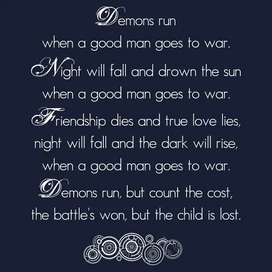 Can you name the demons run poem? Demons run poem by will karry login | join poetrysoup. This was such an emotional awakening kind of poem. Demons run when a good man goes to war night will fall and drown the sun when a good man goes to war.