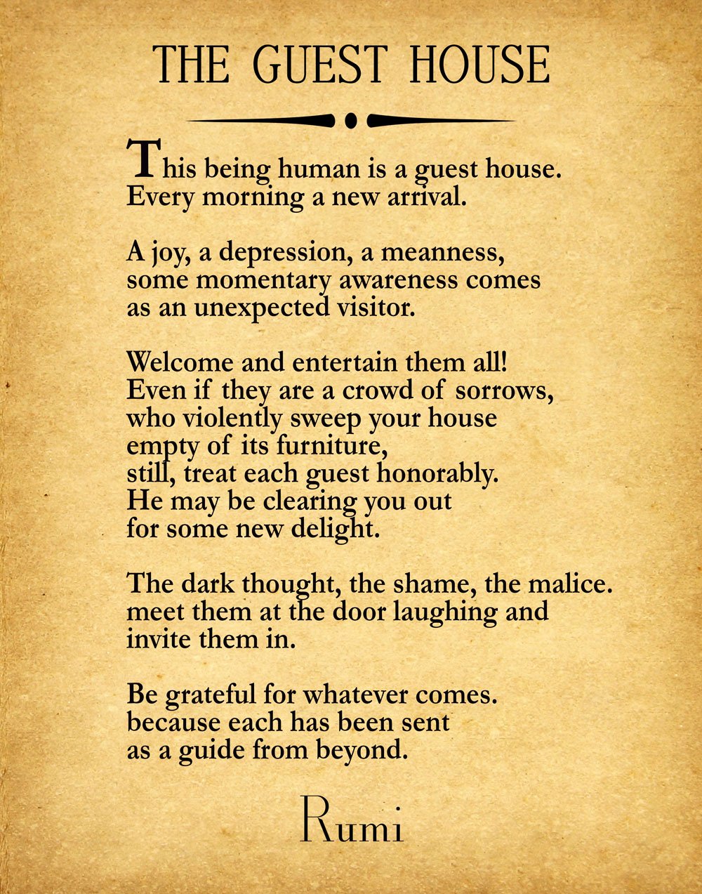 What is the poem about? Inspired by rumi's classic poem guest house, gus the goose invites us into his quaint cottage in t. You will find the guest house poem further down in numerous forms, from text to meme plus several video renditions. Every morning a new arrival.